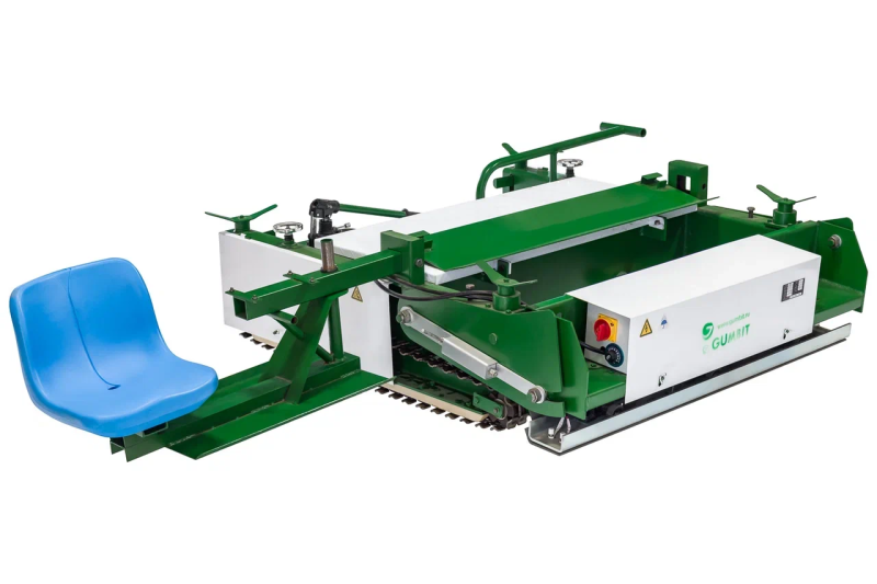 Полуавтоматический укладчик резиновой крошки. Помогает монтировать покрытия на больших площадях. Отличается высокой производительностью и простым управлением. Ширина укладки — 1,5 м.